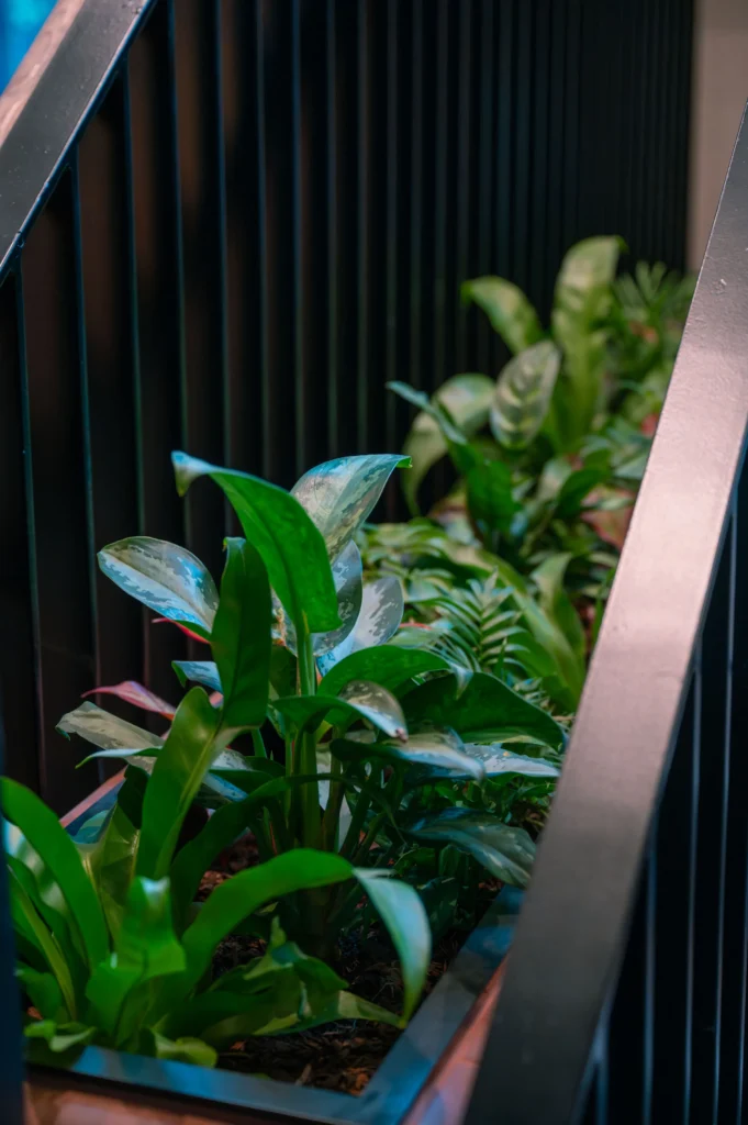The basement area was also enhanced with artificial plants to compliment the biophilic greenery found elsewhere in the building.